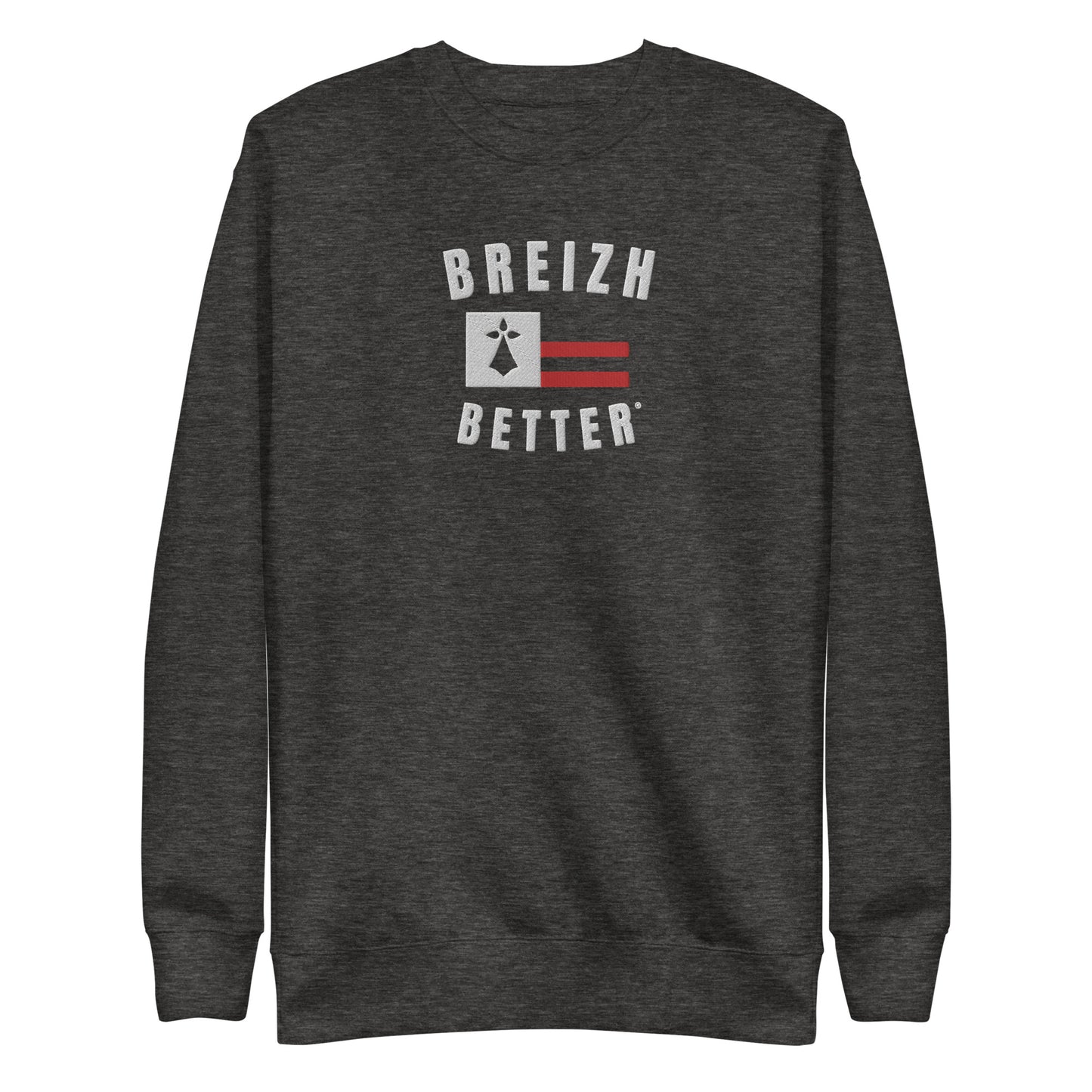 Sweatshirt premium unisexe Breizhbetter Hermine Blanc Rouge Brodé